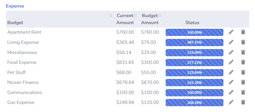 Your Actual Disposable Income is what is calculated based on your budgeted disposable income minus what you actually ended up spending for that month.